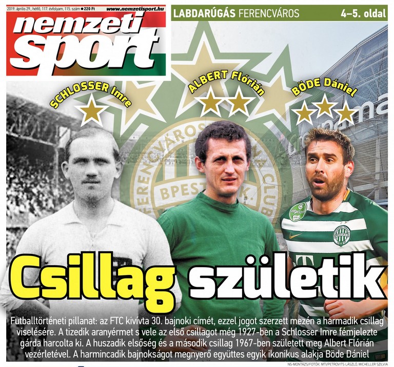 A Fradi mezére mostantól – Magyarországon elsőként – felkerülhet a harmadik aranycsillag, hiszen a zöld-fehérek szombat este 30. (élvonalbeli) bajnoki címüket ünnepelték.