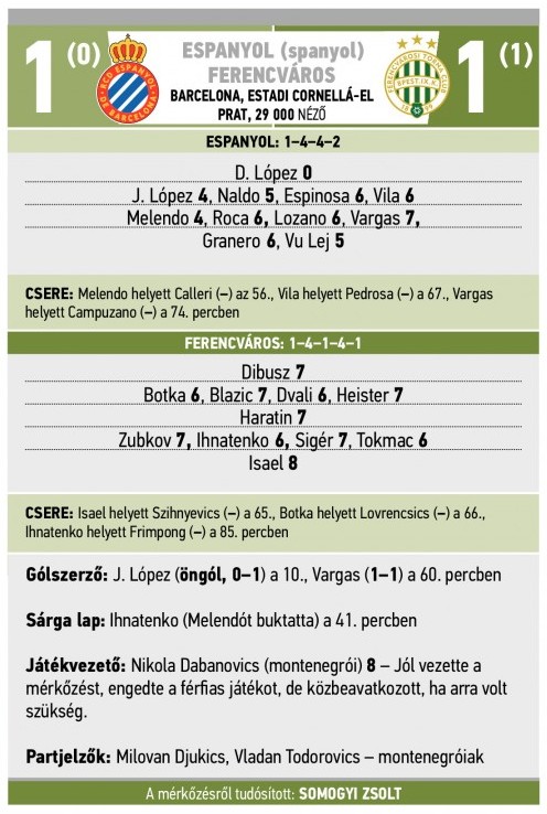 (A Nemzeti Sport, az nso.hu, az UEFA, a Ferencváros és az Espanyol hivatalos honlapja alapján)