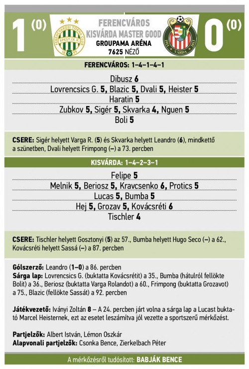 (A Nemzeti Sport, az nso.hu, a Ferencváros és a Kisvárda hivatalos honlapja, valamint az MLSZ Adatbankja alapján)
