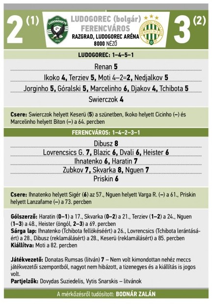 (A Nemzeti Sport, az nso.hu, az UEFA, a Ferencváros és a Ludogerec hivatalos honlapja alapján)