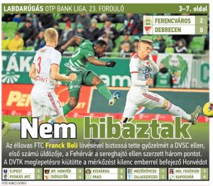 – A szombati gólom azért volt különösen fontos, mert alaposan meg kellett szenvednünk a győzelemért. A Debrecen jól adogatott a mezőnyben, nem hagyott bennünket kibontakozni, és többször a saját térfelünkön támadott le. De ezzel nem lepett meg, hiszen az összecsapás előtt vezetőedzőnk többször is felhívta a figyelmünket rá, hogy a Mezőkövesd után a Debrecen is hasonló stílusban futballozik, s biztos benne, hogy nem húzódik vissza a tizenhatosa előterébe.