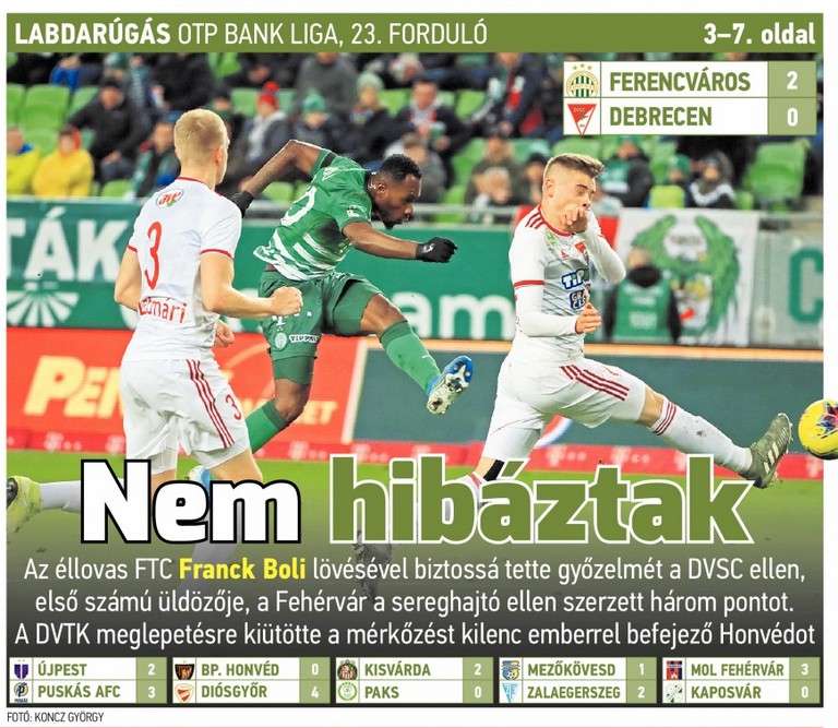 (A Nemzeti Sport, az nso.hu, a Ferencváros és a DVSC hivatalos honlapja, valamint az MLSZ Adatbankja alapján)