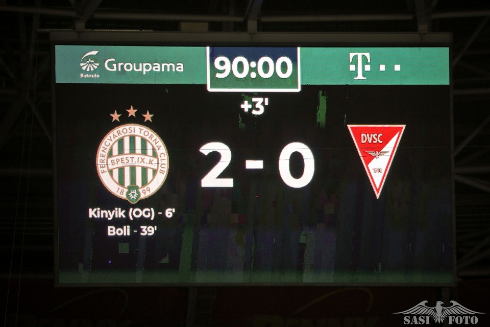 Hazai pályán a Ferencváros 2–0-ra legyőzte az elképesztő védelmi hibákat vétő Debrecent a labdarúgó NB I 23. fordulójának záró mérkőzésén.