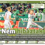 Szerhij Rebrov, az FTC vezetőedzője úgy fogalmazott: a csapat túl van a mezőkövesdi fiaskón, és a 3–0-s vereségnek annyi hozadéka lehet, hogy a futballistákat kimozdította a komfortzónájukból.