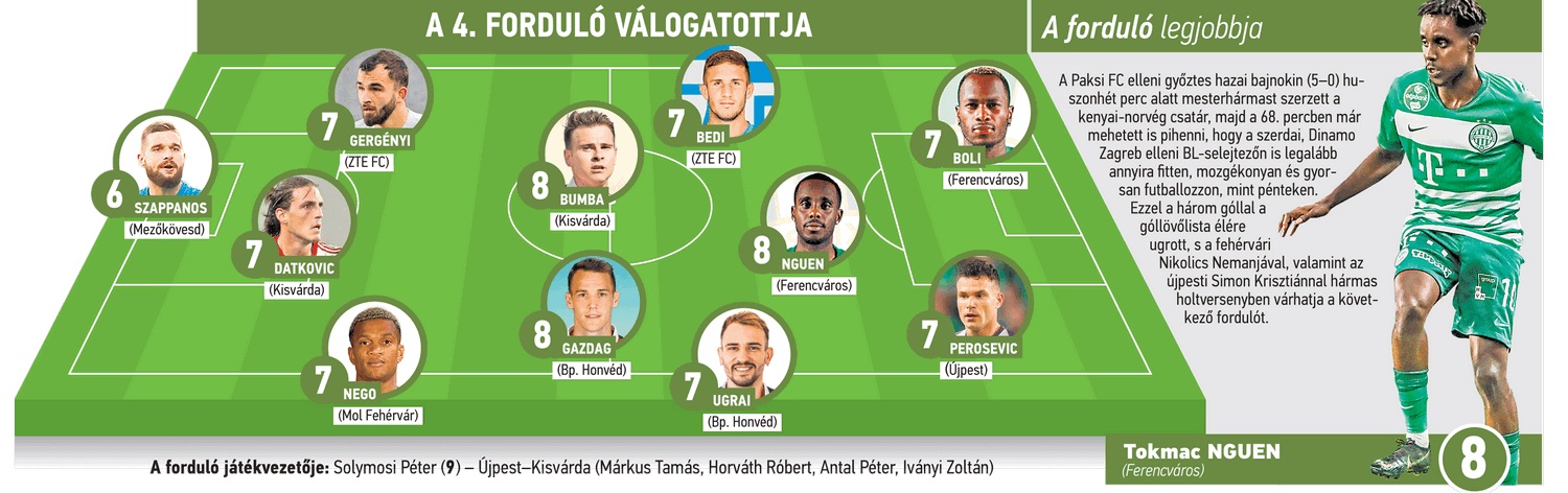 Ferencváros: Dibusz — Lovrencsics G. (Baturina, 62.), Haratin, Frimpong, Heister — Laidouni, Somália — Isael (Sigér, 46.), Nguen (Zubkov, 68.), Varga R. — Boli
