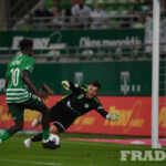 Nguen passzát Boli jobbal kapura rúgja 19-ről, középről, jobbra ledőlve fogja a labdát Rácz kapus.