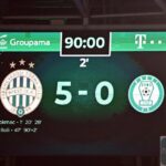 FRANCK BOLI az ötös bal sarka elől estében a bal alsó sarokba lő, Bognártól kapta a gólpasszt, aki menteni akarta Boli passzát a 16-oson. 5–0!
