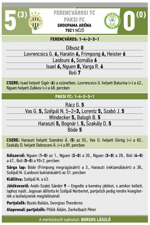 (A Nemzeti Sport, az nso.hu, a Ferencváros és a Paks hivatalos honlapja, valamint az MLSZ Adatbankja alapján)