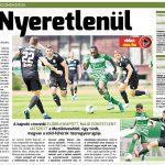 40. LÉC! Pekár jobb oldali szögletét Varjas László mellől Takács a lécre fejeli, hét méterről, középről. A hazaiak nem, csak csapattársa zavarta az éket…