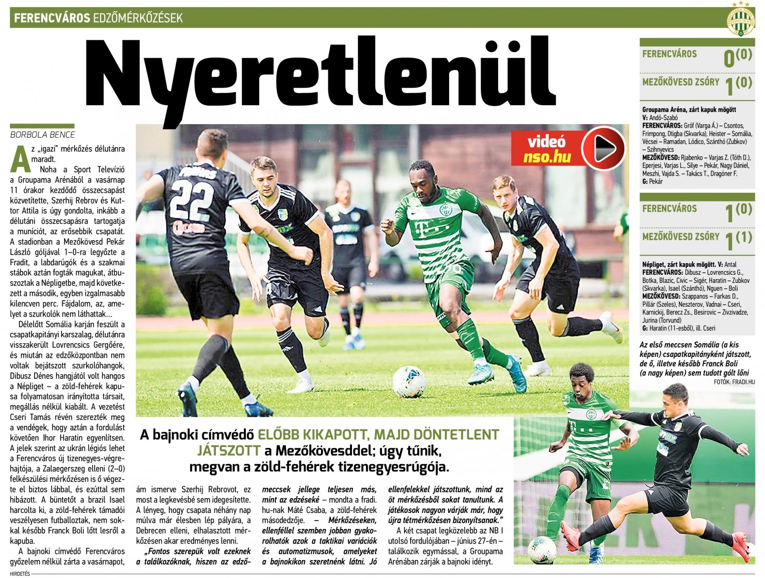2020.V.17. Ferencváros – Mezőkövesd: 0-1 (edzőmérkőzés)