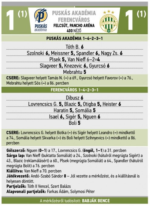 (A Nemzeti Sport, az nso.hu, az Új Szó, a Ferencváros és a Puskás Akadémia hivatalos honlapja, valamint az MLSZ Adatbankja alapján)