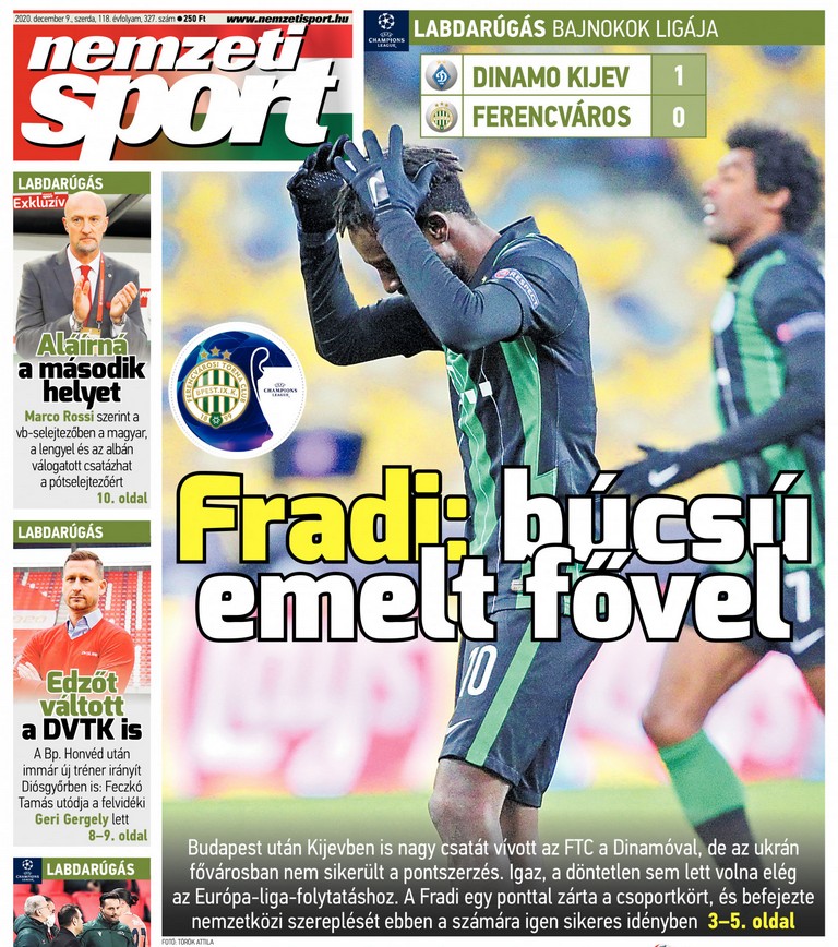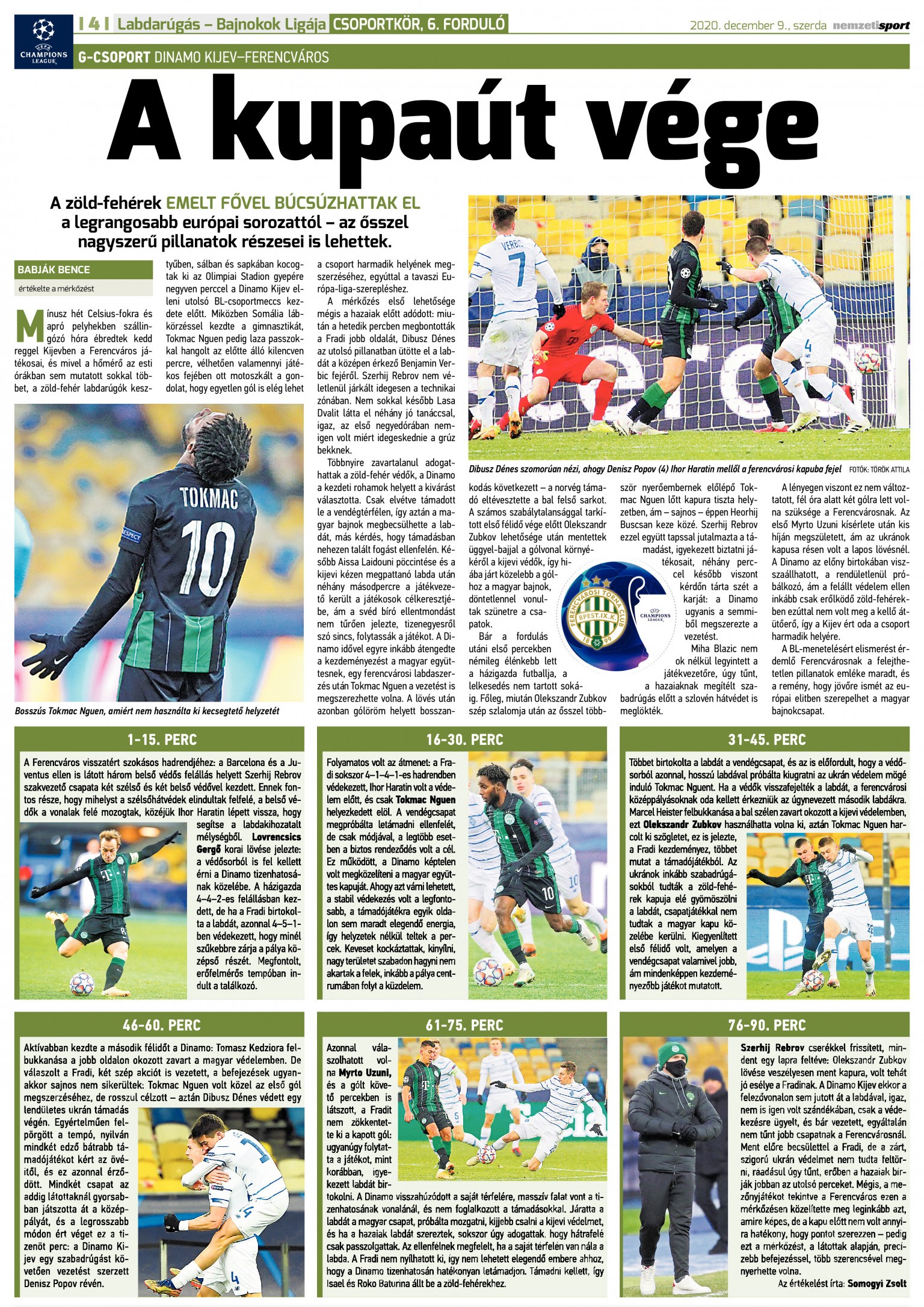 2020.XII.8. BL-csoportkör: Dinamo Kijev – Ferencváros: 1-0