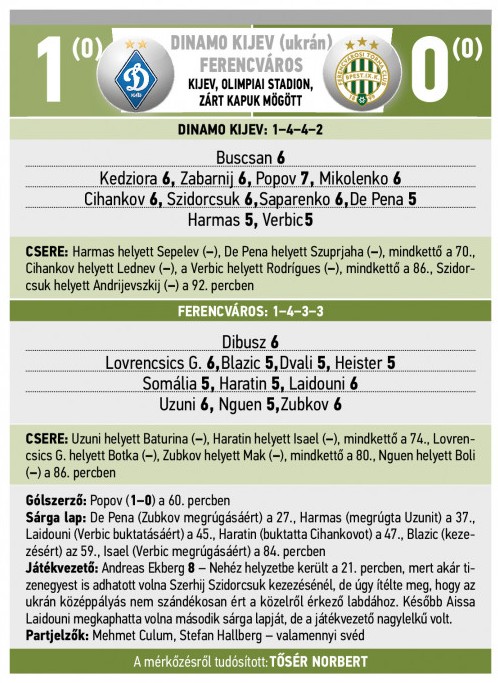 (A Nemzeti Sport, az nso.hu, az UEFA, a Ferencváros és a Dinamo Kijev hivatalos honlapja alapján)