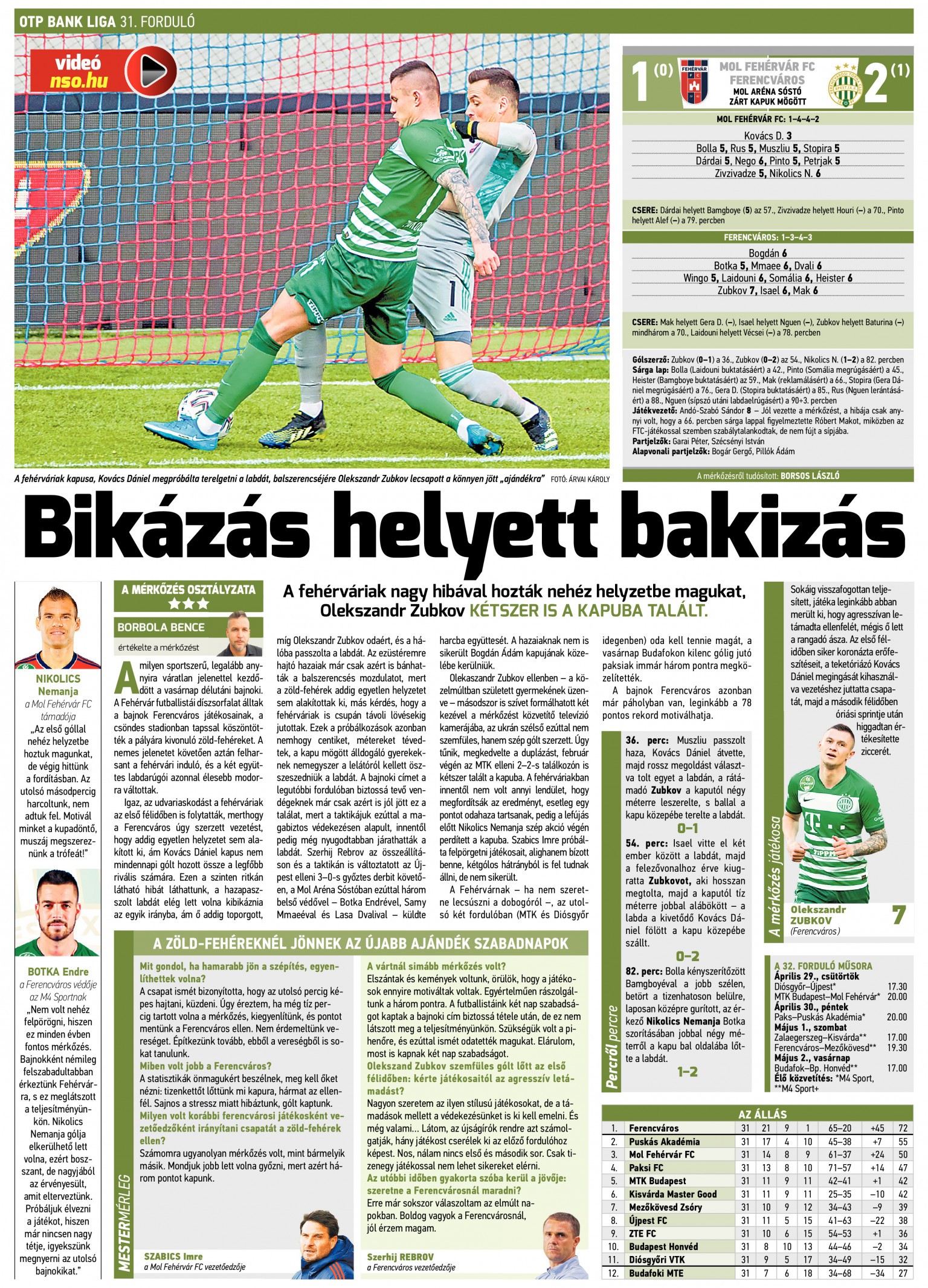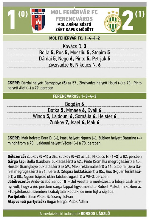 (A Nemzeti Sport, az nso.hu, a Ferencváros és a MOL Fehérvár hivatalos honlapja, valamint az MLSZ Adatbankja alapján)