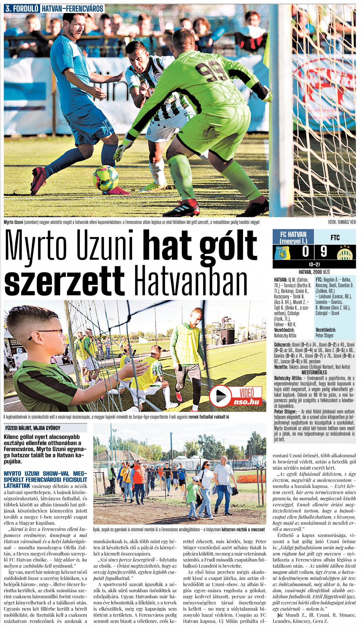 (A Nemzeti Sport, az nso.hu, a Ferencváros és az FC Hatvan hivatalos honlapja, valamint az MLSZ Adatbankja alapján)