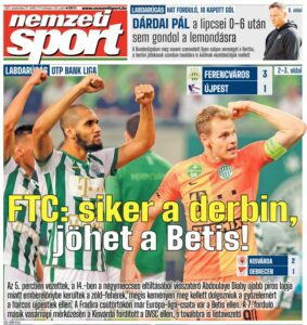 – Az előző hét Újpest elleni meccset megnyertük, úgyhogy más forgatókönyvbe bele sem szeretnénk gondolni, győzni akarunk! – vágta rá Tokmac Nguen, a Ferencváros támadója. – Rengeteget jelent nekünk a derbi, ezért kizárólag egyetlen kimenetel elfogadható: ha megnyerjük.