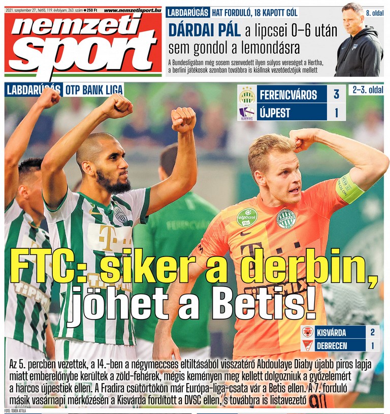 SZŐKE István, az FTC korábbi támadója: „Hogy mit várok a meccstől? Dózsa-győzelmet nem, attól a kedvem, étvágyam elmenne. Nem lesz probléma, csak a Fradi győzhet. A sok hiányzó nem jelenthet gondot, Székesfehérváron is nyert a csapat, egységesnek tűnik a társaság. Képzettebb, jobb játékosokból áll, és már a középpálya is rendben van. Aissa Laidounit tartom a legtöbbre, de Myrto Uzuni is hasznos, ahogyan Ryan Mmaee is. A nemzetközi meccsek alapján egyre jobb lesz a játékunk, de hiányoznak a magyarok a csapatból. A Fradi azonban így is Fradi, nincs mit tenni. Az Újpest kieső helyen van, valami nem stimmel a liláknál. Jobban örülnék, ha kiélezettebbek lennének a derbik, mert ezúttal is simának tűnik a meccs. Mindenesetre az Albert-kiállítás megnyitóján mondtam a másodedzőnknek, ha baj van, szóljon, és beugrok!”