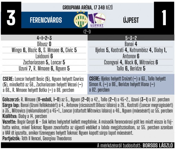 (A Nemzeti Sport, az nso.hu, a Ferencváros és az Újpest hivatalos honlapja, valamint az MLSZ Adatbankja alapján)