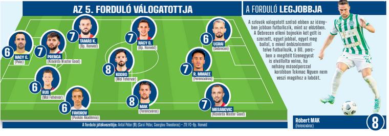 Vécsei Bálint be, Mak le. A szélső talán legjobb meccsét játszotta a Fradi színeiben.