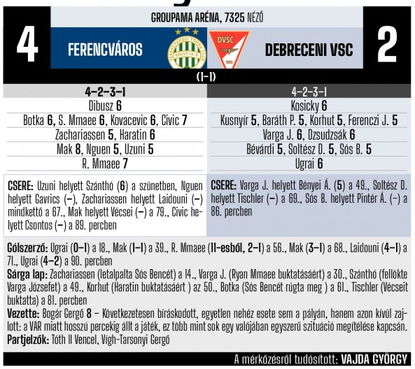 A Ferencváros hazai pályán 4–2-re megverte a Debreceni VSC-t a labdarúgó NB I 5. fordulójában.