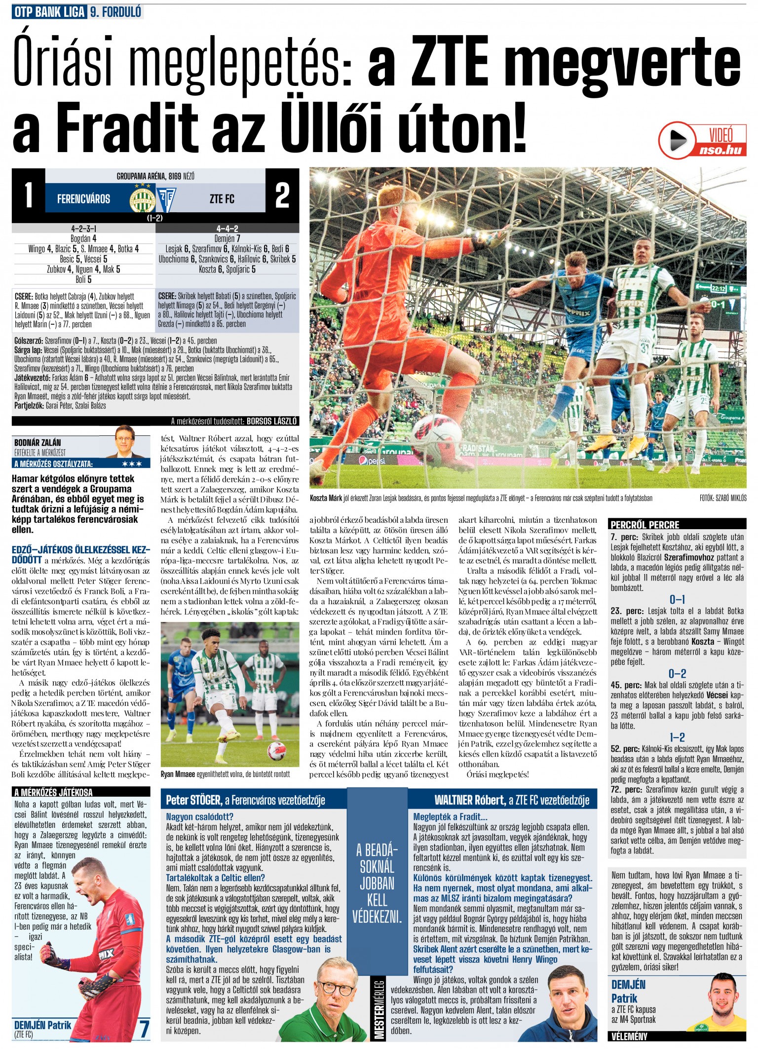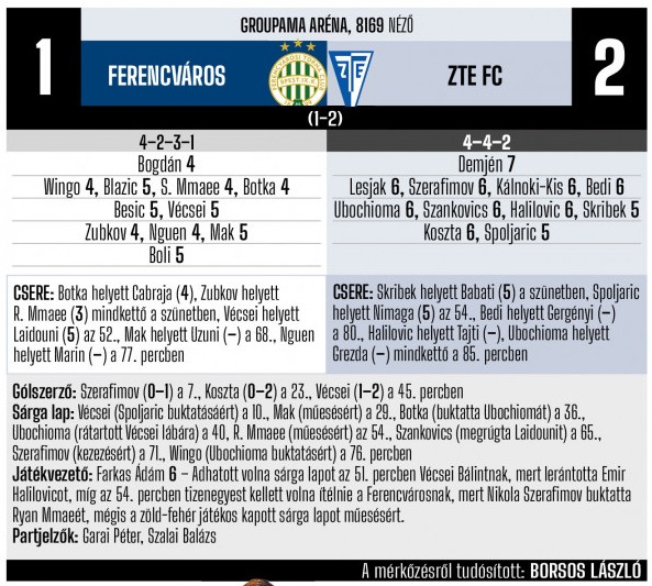(A Nemzeti Sport, az nso.hu, a Ferencváros és az ZTE hivatalos honlapja, valamint az MLSZ Adatbankja alapján)