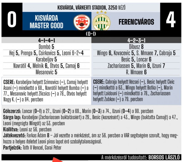 (A Nemzeti Sport, az nso.hu, a Ferencváros és a Kisvárda hivatalos honlapja, valamint az MLSZ Adatbankja alapján)