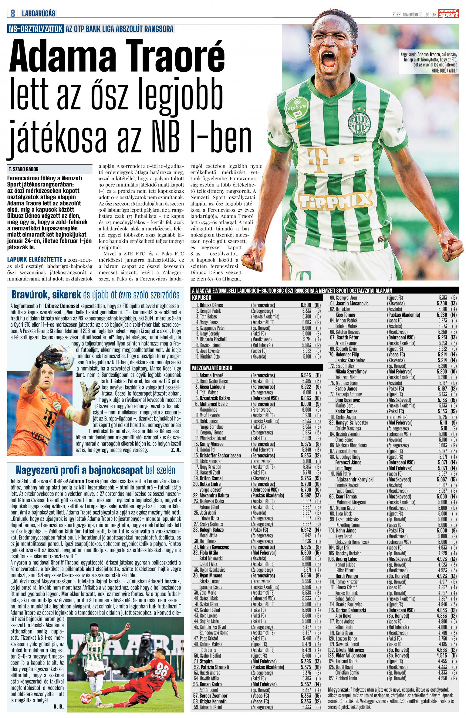 2022/23: Játékosrangsor Közzétéve: 2023. június 5. hétfő | Szerző: K@rcsi Az idény legjobbja: Dibusz Dénes — A mezőnyjátékosok rangsorában a kecskeméti Banó-Szabó Bence végzett az élen 2022 ősz: Adama Traoé az ősz játékosa 2022 Ősz: Vélemény, hozzászólás? Válasz megszakításaAz e-mail címet nem tesszük közzé. A kötelező mezőket * karakterrel jelöltük Hozzászólás * Név * E-mail cím * Honlap Δ