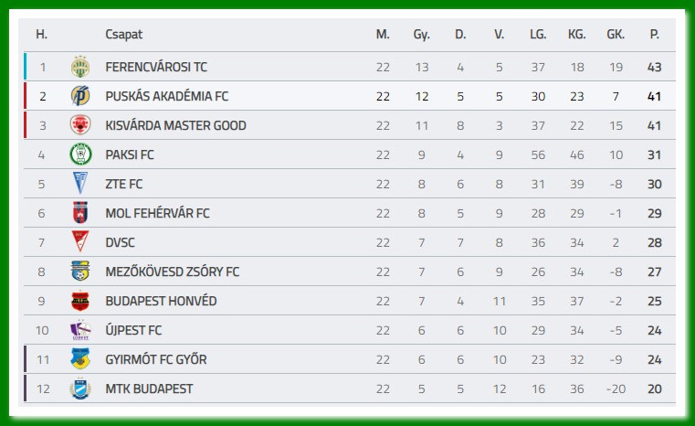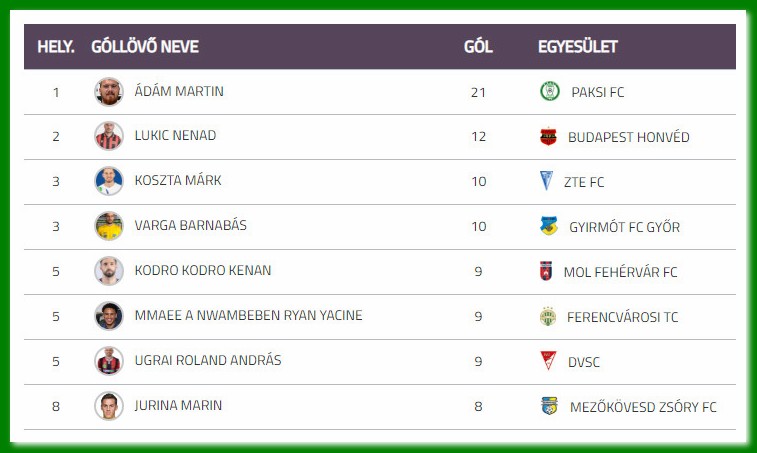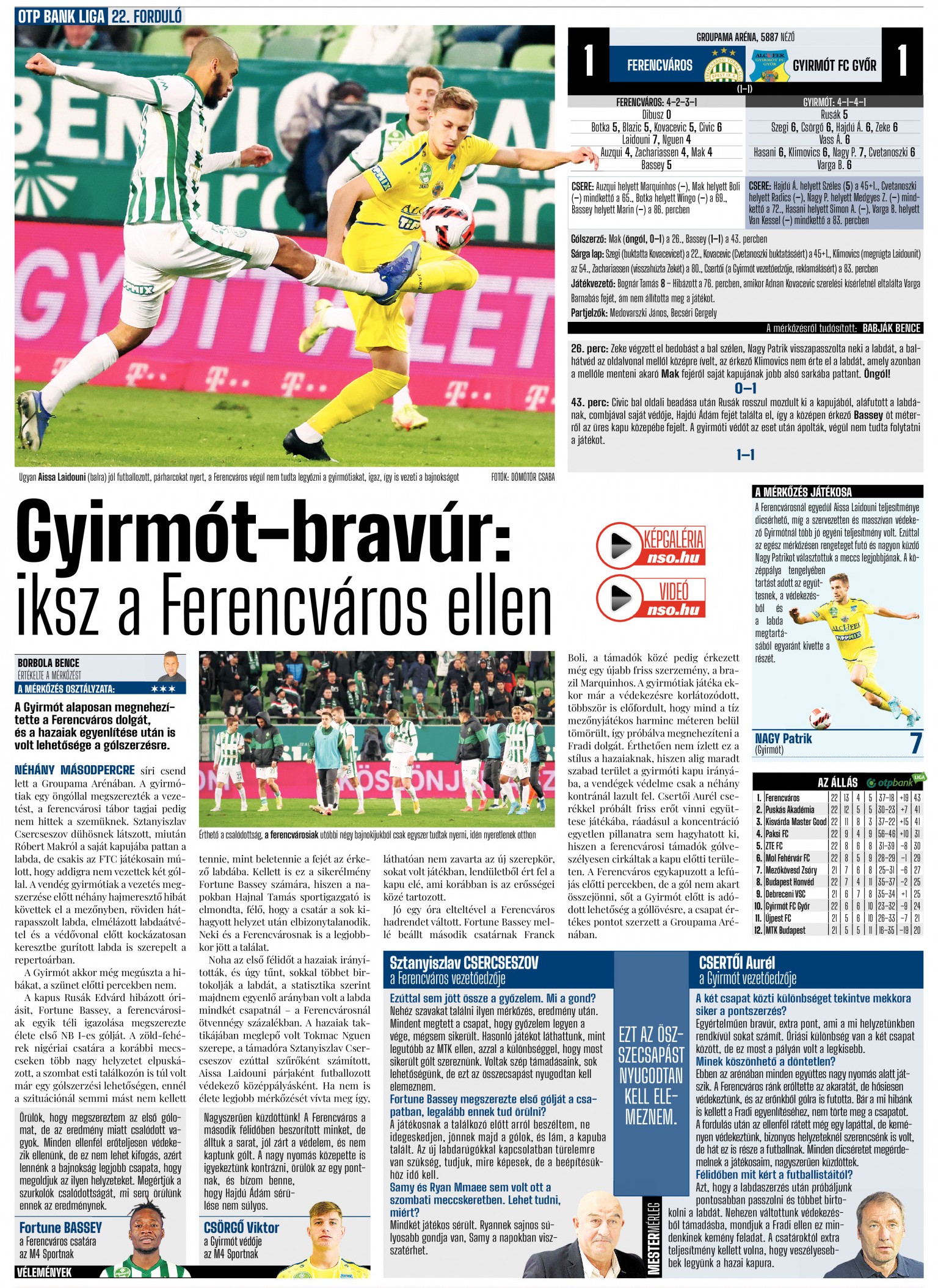 (A Nemzeti Sport, az nso.hu, a Ferencváros és a Gyirmót hivatalos honlapja, valamint az MLSZ Adatbankja alapján)