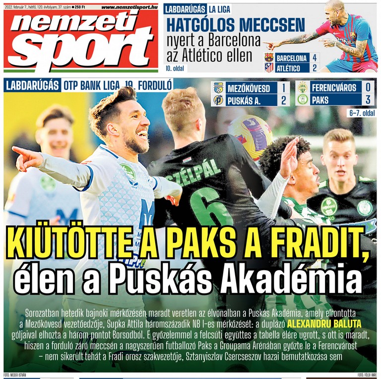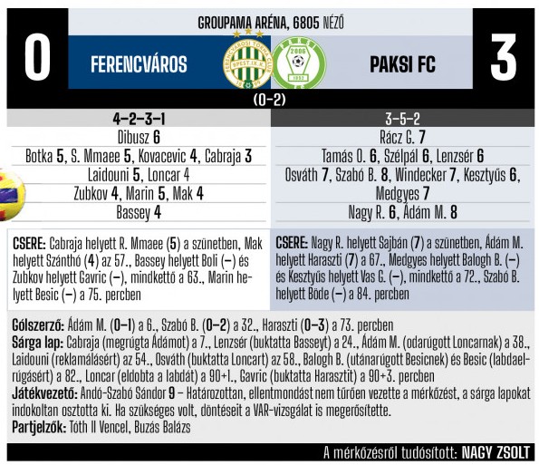 (A Nemzeti Sport, az nso.hu, a Ferencváros és a Paks hivatalos honlapja, valamint az MLSZ Adatbankja alapján)