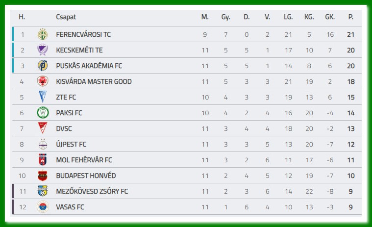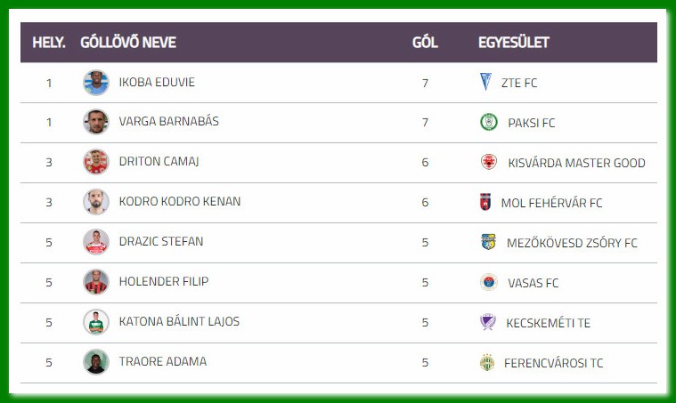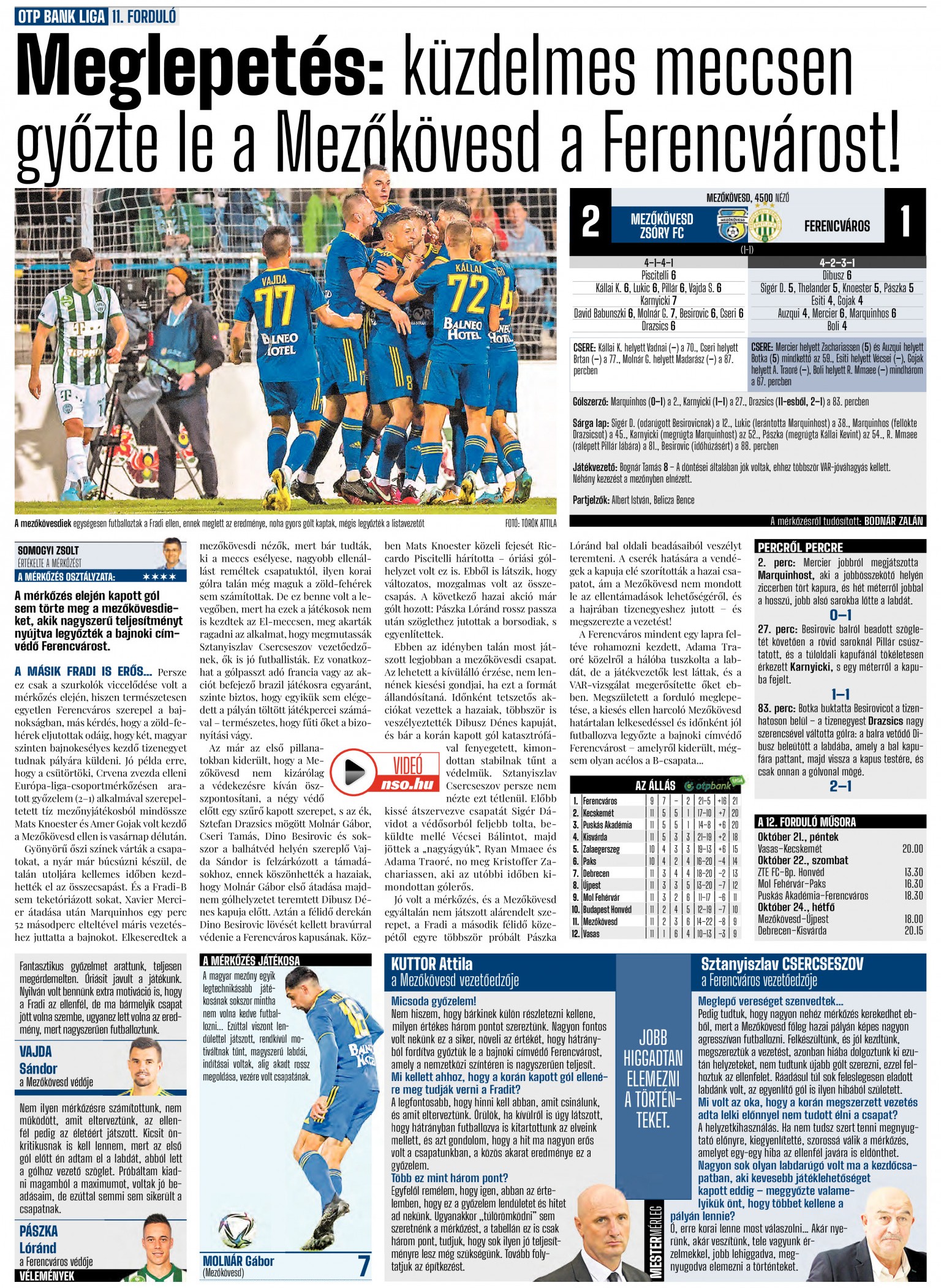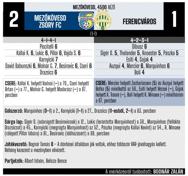 (A Nemzeti Sport, az nso.hu, a Ferencváros és a Mezőkövesd hivatalos honlapja, valamint az MLSZ Adatbankja alapján)