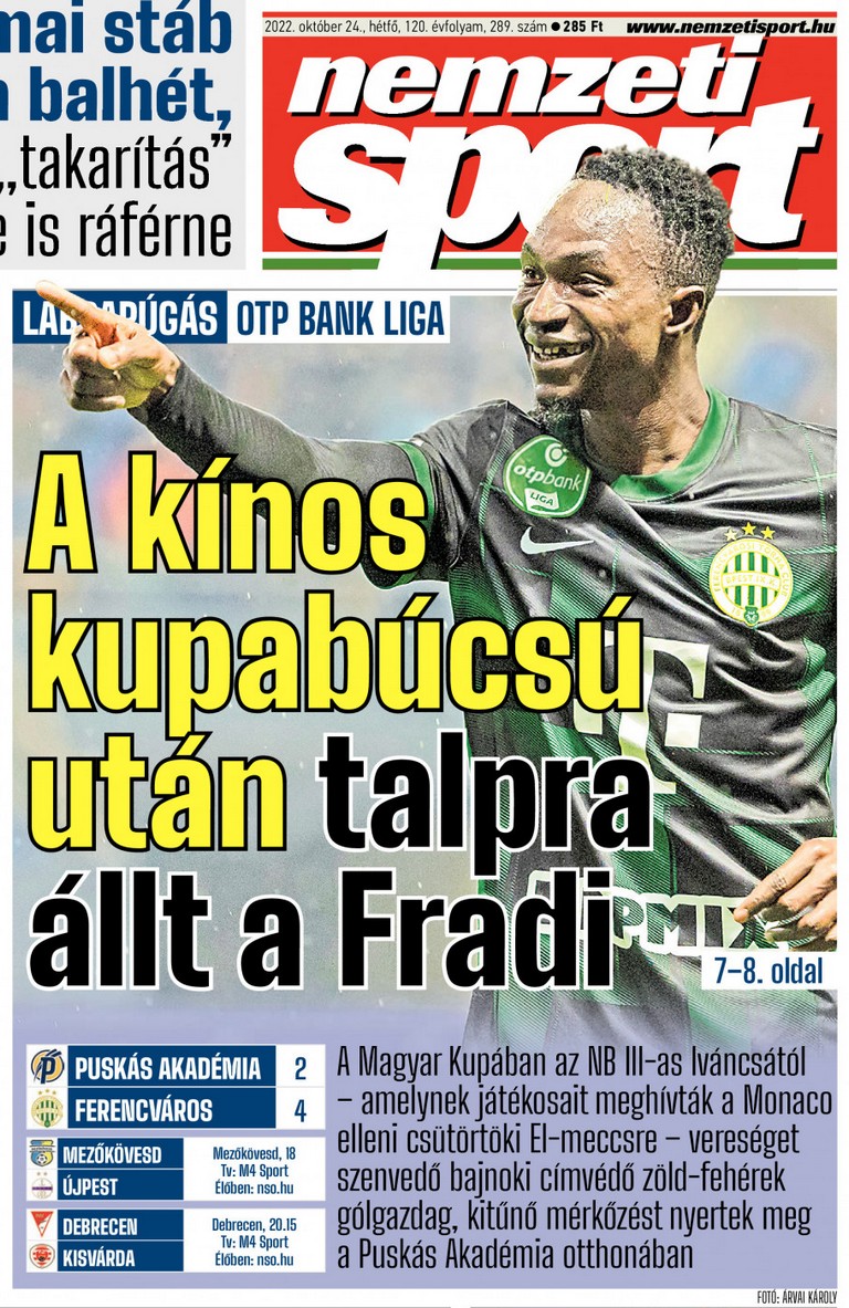 A SZÉGYENLETES KUPAKIESÉS UTÁN a Puskás Akadémiával csap össze a Ferencváros a bajokságban. Az FTC-nek nemcsak a három pont besöprése lesz a tét, sok játékosának saját becsülete visszaszerzéséért is kell tepernie, mert az utóbbi időszakban tanúsított hozzáállásukat látva kijelenthető, a nemzetközi kupaszereplés „árnyékában” félvállról vették a magyarországi sorozatok mérkőzéseit, ami morális kérdéseket vet fel.