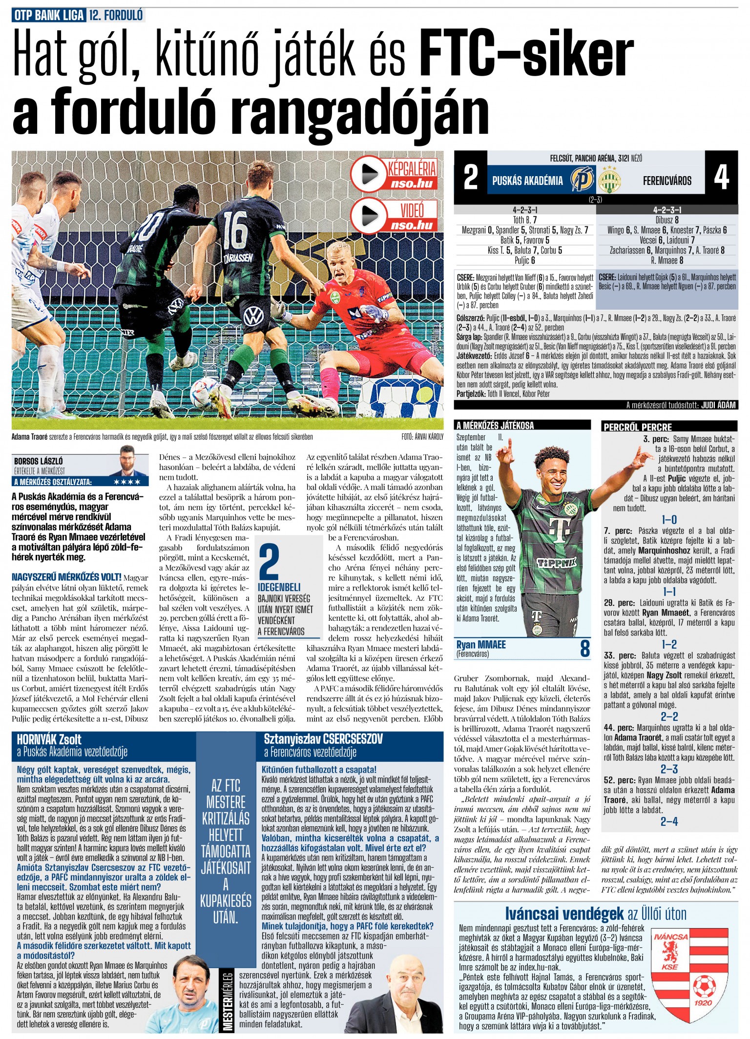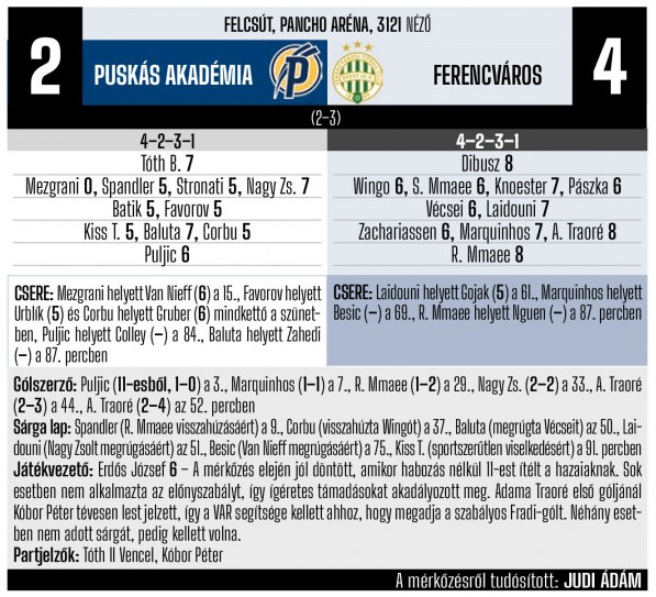 (A Nemzeti Sport, az nso.hu, a Ferencváros és a Puskás Akadémia hivatalos honlapja, valamint az MLSZ Adatbankja alapján)