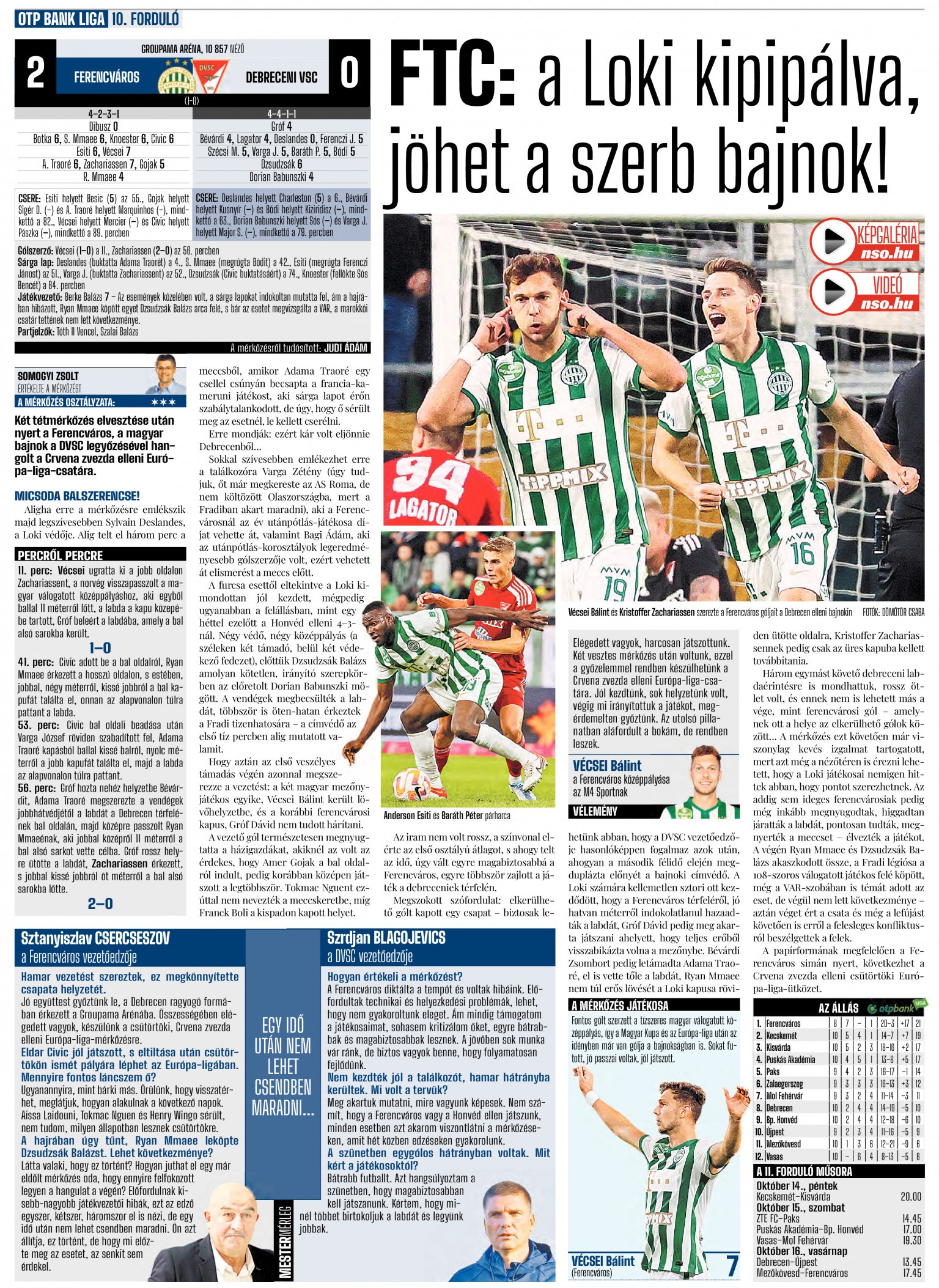 – Két vesztes mérkőzésen voltunk túl, a kecskeméti és a belgrádi zakó sem tett jót az öltöző hangulatának, fontos volt, hogy a Debrecen ellen javítsunk. A gólomnak azért örültem különösen, mert kiélezett szituációban szereztem, ráadásul az akció tőlem indult, én ugrattam ki Kristoffer Zachariassent, majd értem oda a befejezéshez. Éreztem, hogy hová érkezhet a beadás, örülök, hogy jól találtam el a labdát, és gól lett belőle.