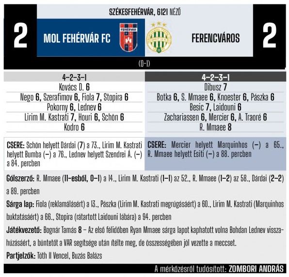 2022.XI.6. MOL Fehérvár – Ferencváros: 2-2