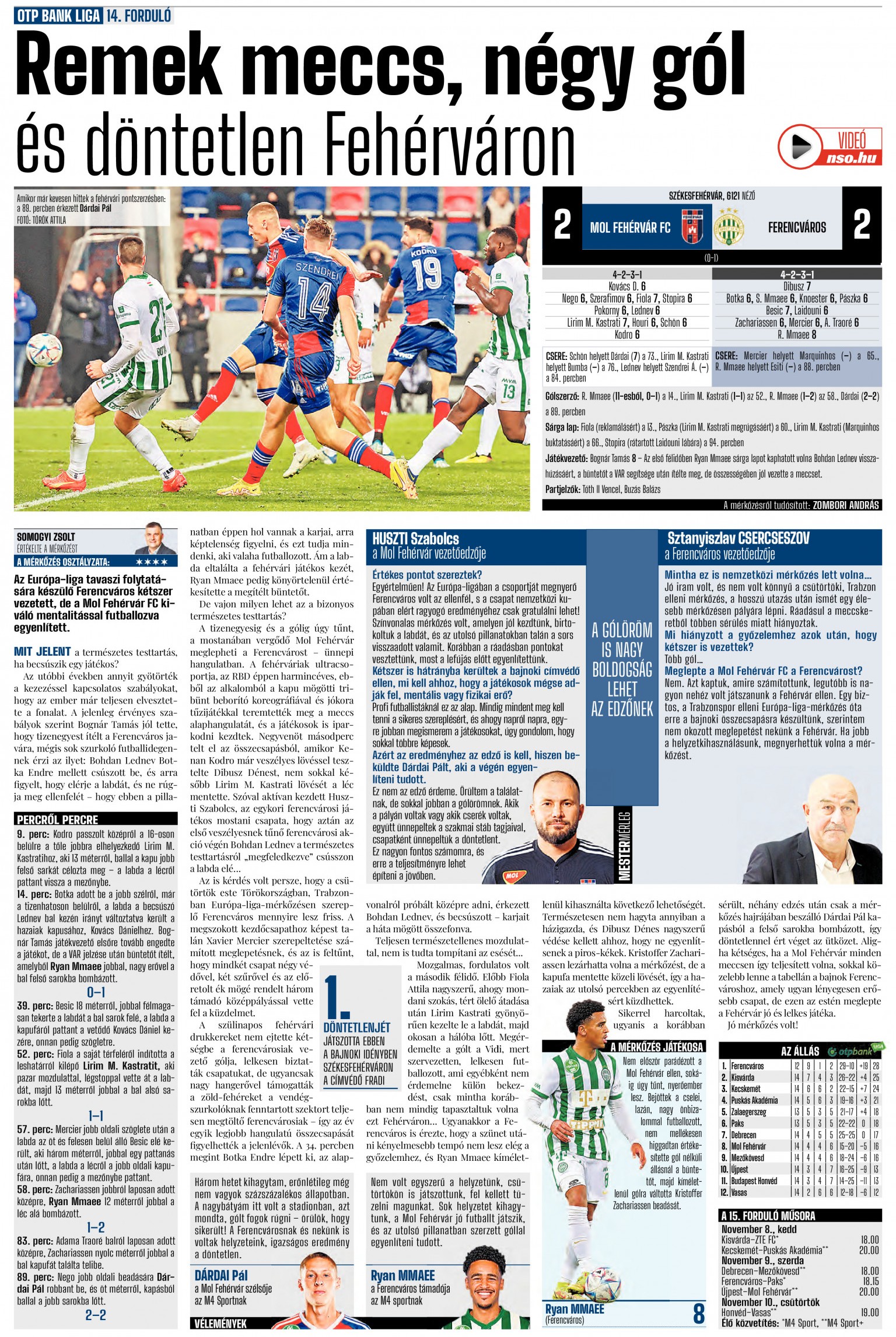 (A Nemzeti Sport, az nso.hu, a Ferencváros és a MOL Fehérvár hivatalos honlapja, valamint az MLSZ Adatbankja alapján)