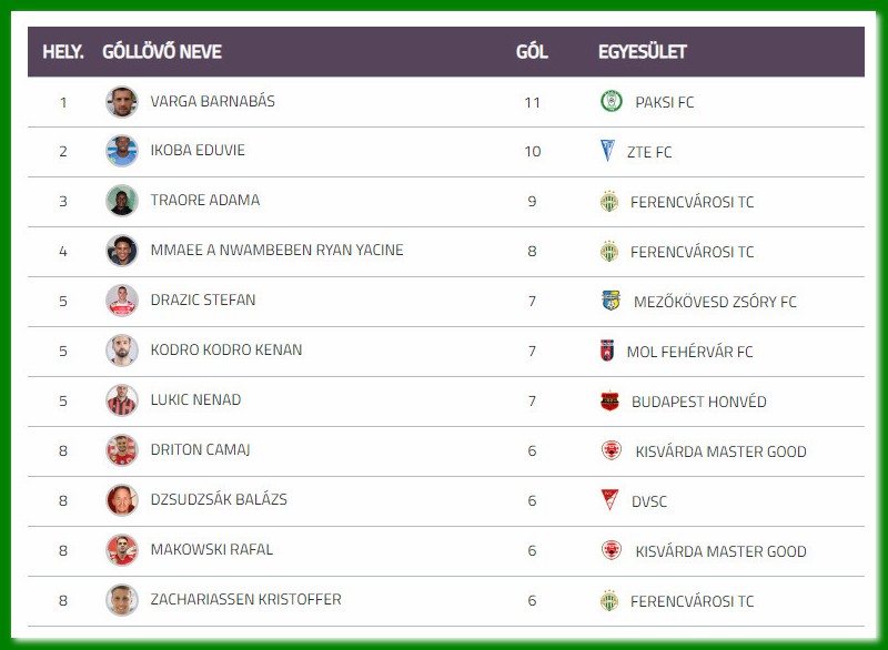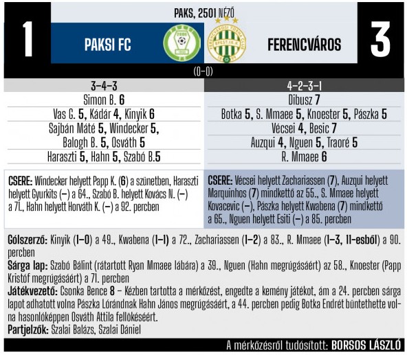 (A Nemzeti Sport, az nso.hu, a Ferencváros és a Paks hivatalos honlapja, valamint az MLSZ Adatbankja alapján)