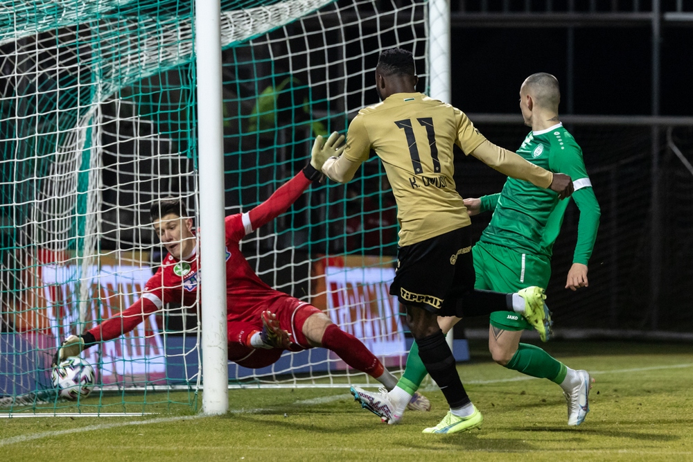 Letámad a Fradi, Traoré szerel, R. Mmaee ballal nem sokkal lő a jobb alsó sarok mellé 20-ról, picit jobbról.