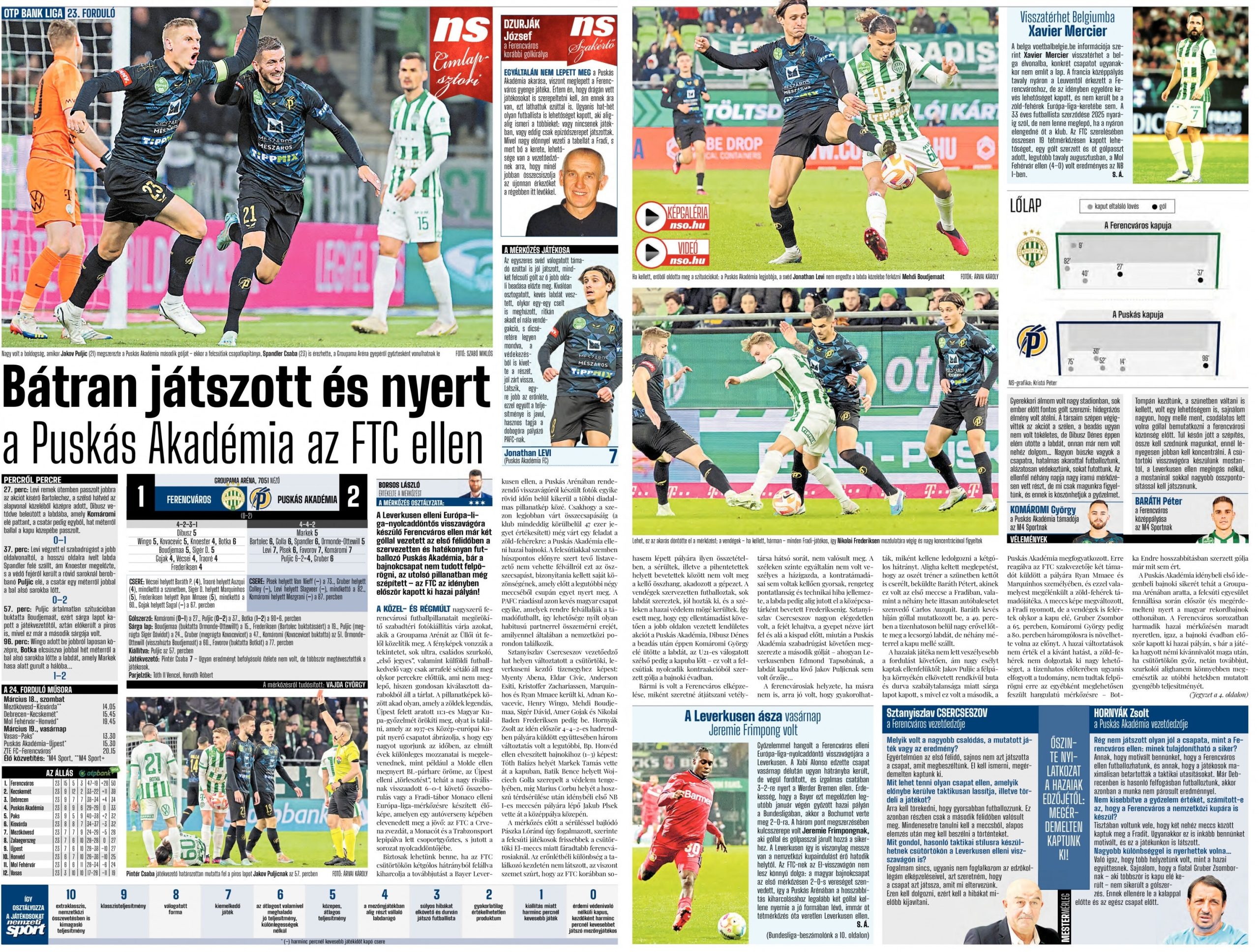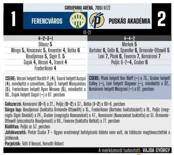 (A Nemzeti Sport, az nso.hu, a Ferencváros és a Puskás Akadémia hivatalos honlapja, valamint az MLSZ Adatbankja alapján)