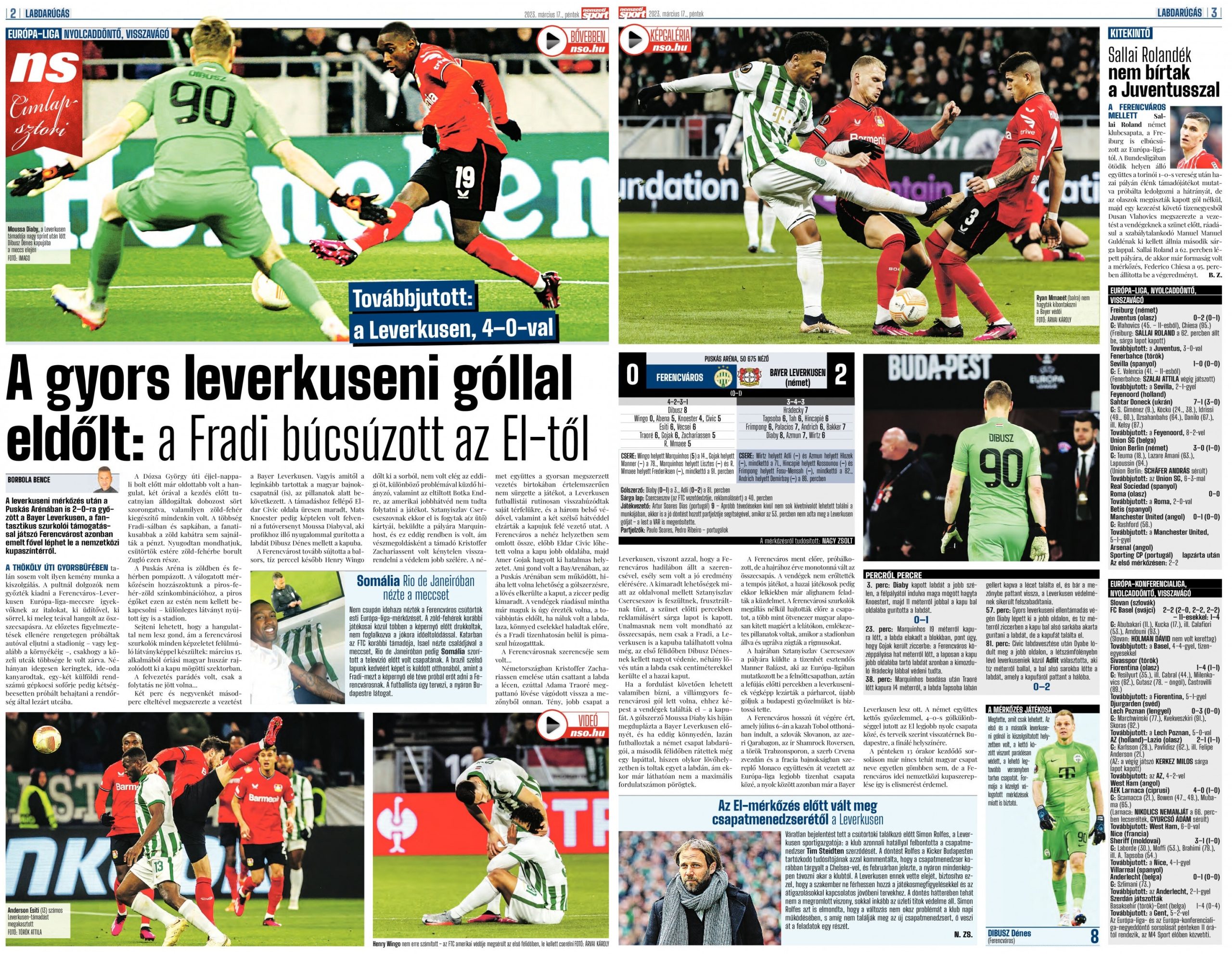 Végül, de nem utolsósorban a Welt egy cikkben foglalkozik a Leverkusen budapesti sikerével, valamint az Union Berlin belgiumi kudarcával, kiemelve, hogy míg Belgiumban egy tündérmese ért véget, úgy Budapesten a Bayer „megoldotta a kötelező feladatot”. A patinás napilap szerint Xabi Alonso együttese „megőrizte hidegvérét a budapesti boszorkánykatlanban a magyar klubfutball legfontosabb mérkőzésén az elmúlt 20 évben” – a mérkőzés összefoglalójából kiderül, hogy a Bayer „összeszedetten, higgadtan, de hibákkal” futballozott, míg a Ferencváros helyzete az első játékrészben még nem volt reménytelen, hiszen a magyar csapat több alkalommal is gólt szerezhetett volna.