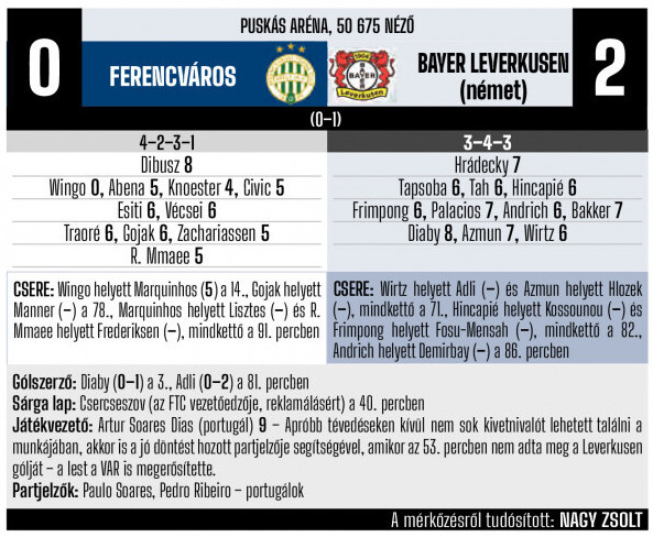 (A Nemzeti Sport, az nso.hu, az UEFA, a Ferencváros és a Bayer 04 Leverkusen hivatalos honlapja alapján)