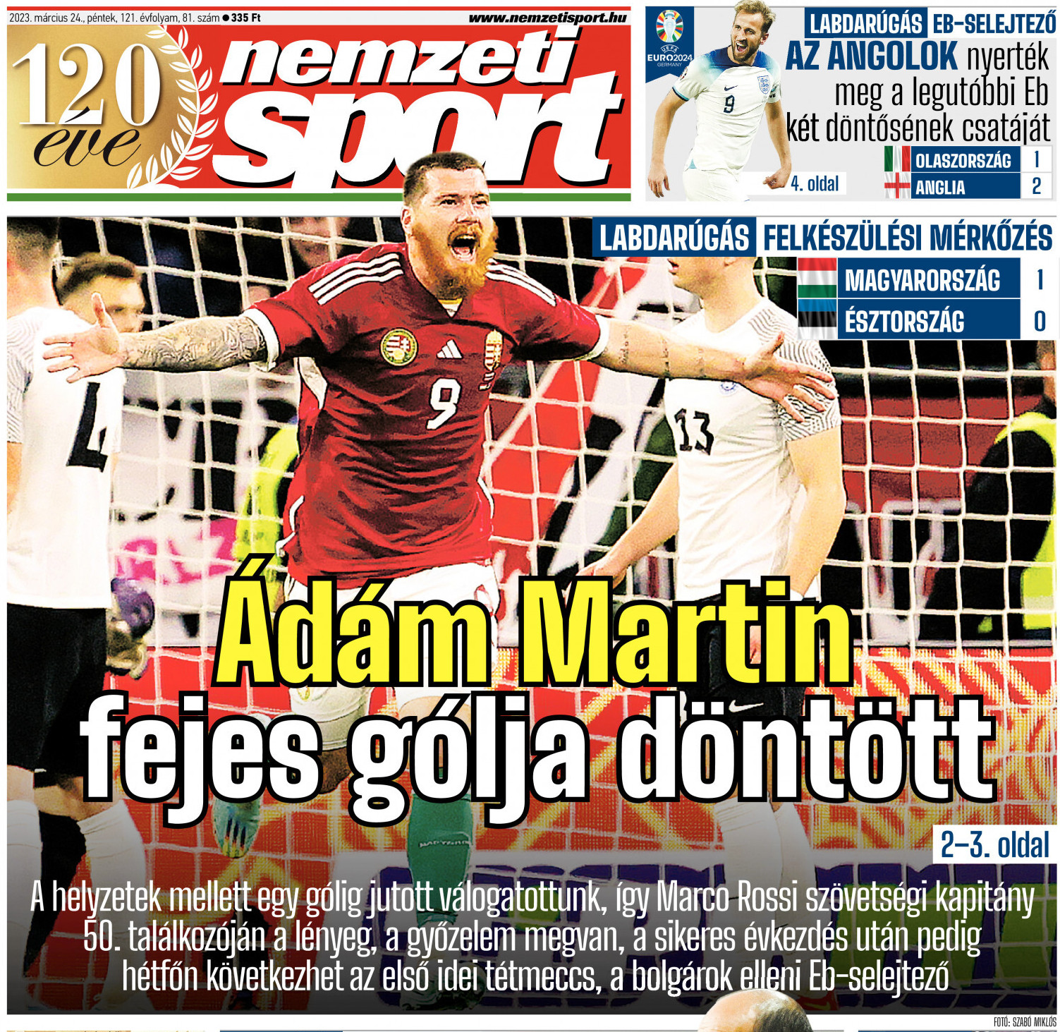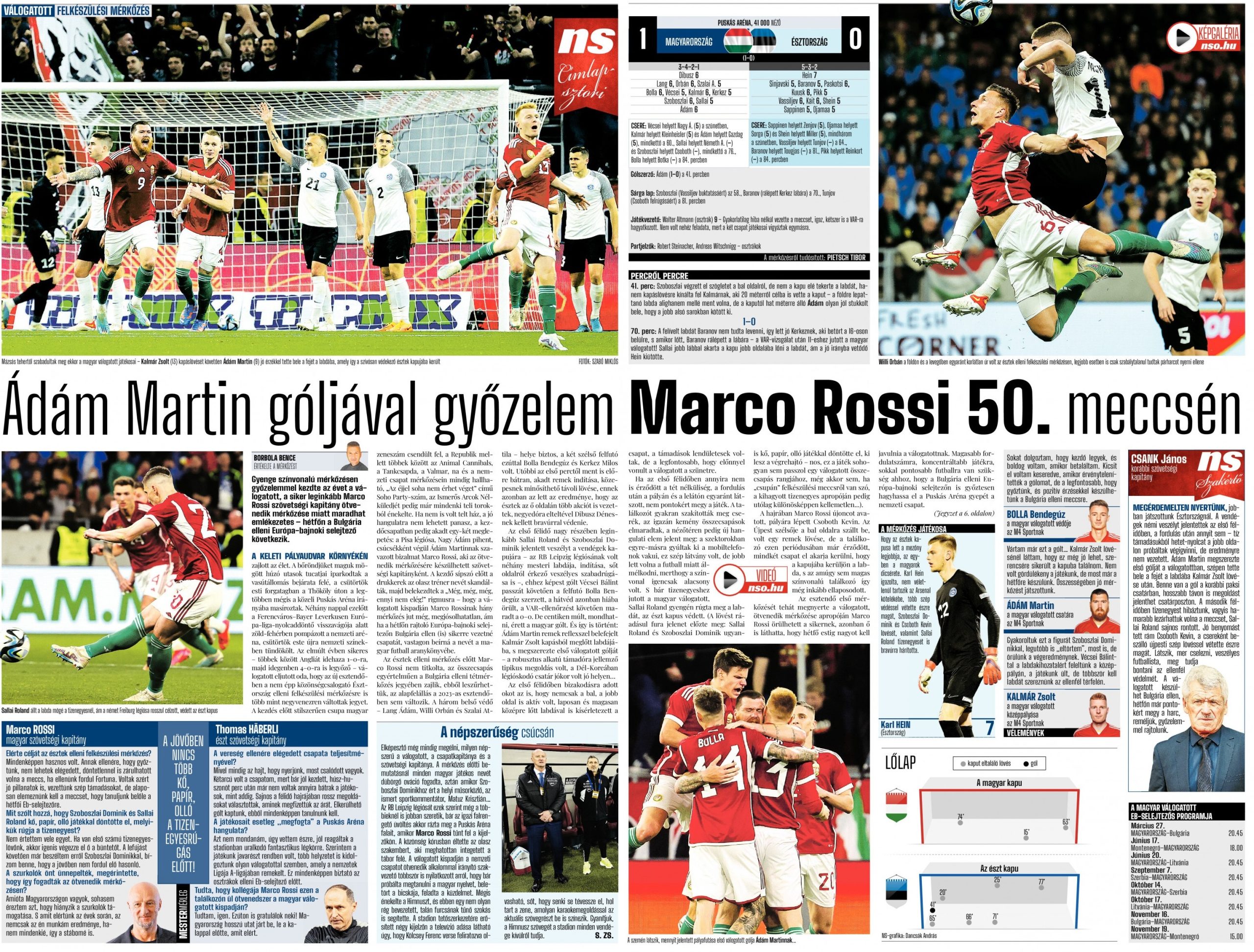A Keleti pályaudvar környékén zajlott az élet. A bőröndjüket maguk mögött húzó utasok tucatjai iparkodtak a vasútállomás bejárata felé, a csütörtök esti forgatagban a Thököly úton a legtöbben mégis a közeli Puskás Aréna irányába masíroztak. Néhány nappal ezelőtt a Ferencváros–Bayer Leverkusen Európa-liga-nyolcaddöntő visszavágója alatt zöld-fehérben pompázott a nemzeti aréna, csütörtök este újra nemzeti színekben tündökölt. Az elmúlt évben sikeres – többek között Angliát idehaza 1–0-ra, majd idegenben 4–0-ra is legyőző – válogatott eljutott oda, hogy az új esztendőben a nem épp közönségcsalogató Észtország elleni felkészülési mérkőzésre is több mint negyvenezren váltottak jegyet. A kezdés előtt stílszerűen csupa magyar zeneszám csendült fel, a Republik mellett többek között az Animal Cannibals, a Tankcsapda, a Valmar, na és a nemzeti csapat mérkőzésein mindig hallható, „Az Éjjel soha nem érhet véget” című Soho Party-szám, az Ismerős Arcok Nélküledjét pedig már mindenki teli torokból énekelte. Ha nem is volt telt ház, a jó hangulatra nem lehetett panasz, a kezdőcsapatban pedig akadt egy-két meglepetés, a Pisa légiósa, Nagy Ádám pihent, csúcsékként Ádám Martinnak szavazott bizalmat Marco Rossi, aki az 50. mérkőzésére készülhetett szövetségi kapitányként. A kezdő sípszó előtt a drukkerek az olasz tréner nevét skandálták, majd belekezdtek a „Még, még, még, ennyi nem elég!” rigmusra – hogy a válogatott kispadján Marco Rossinak hány mérkőzés jut még, megjósolhatatlan, ám ha a hétfőn rajtoló Európa-bajnoki selejtezőn Bulgária ellen (is) sikerre vezetné csapatát, vastagon beírná a nevét a magyar futball aranykönyvébe.