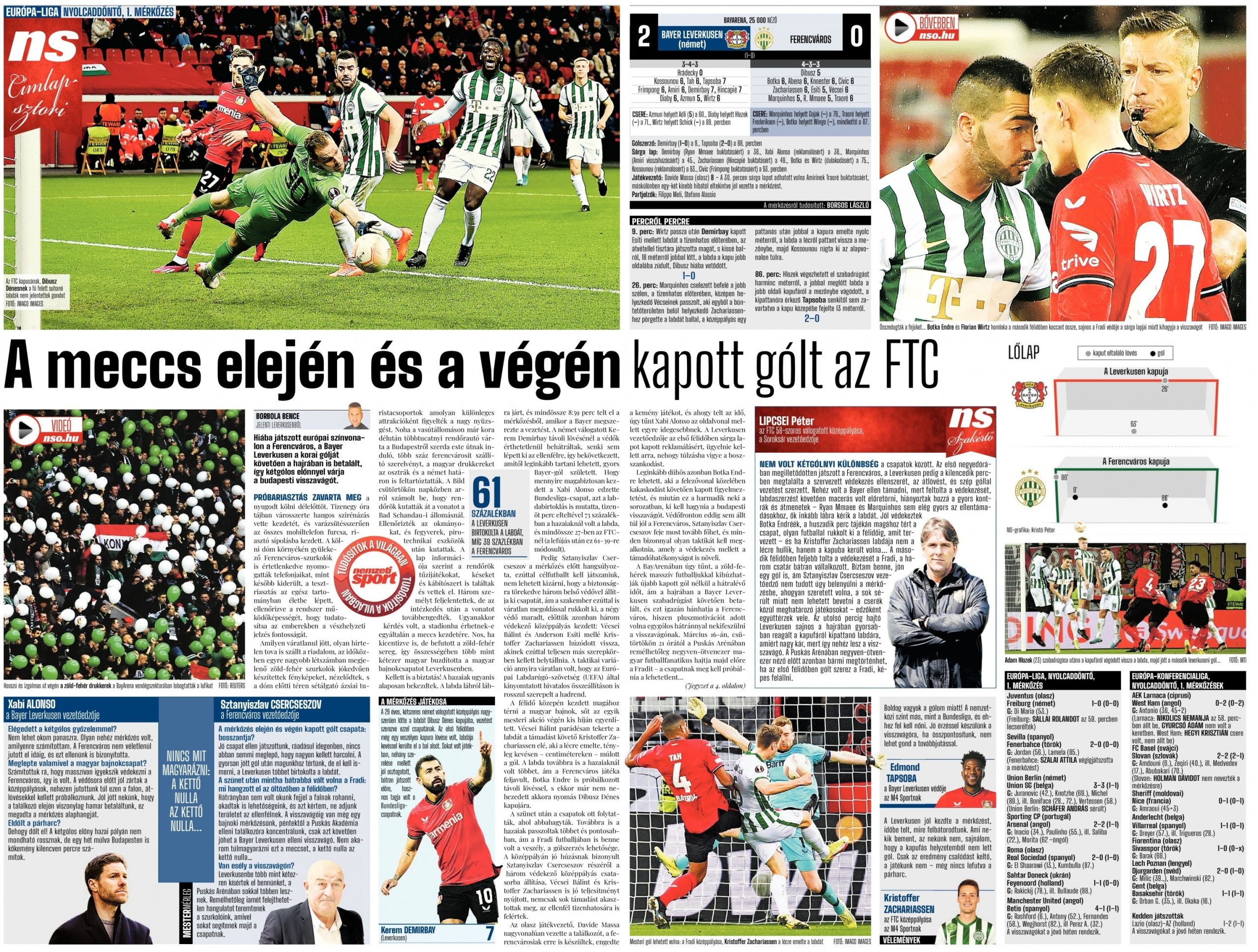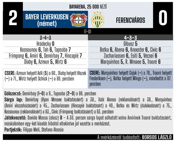 (A Nemzeti Sport, az nso.hu, az UEFA, a Ferencváros és a Bayer 04 Leverkusen hivatalos honlapja alapján)