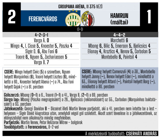 (A Nemzeti Sport, az nso.hu, az UEFA, a Ferencváros és a Hamrun Spartans hivatalos honlapja alapján)