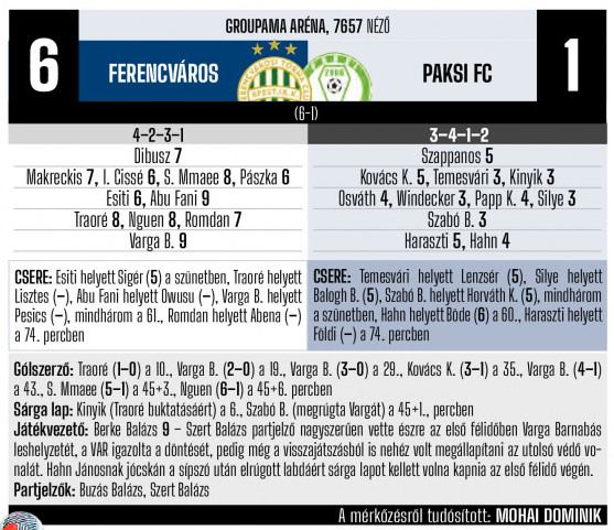Ferencváros — Paks: 6-1 (6-1)