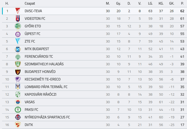 Csere: Holczer, Joaquin, Csiszár Z., Balog Z., Alcantara, Zsivóczky, Ashmore, Wedgbury, Tóth B., Ferenczi I., Pisanjuk, Vass, Kovács István