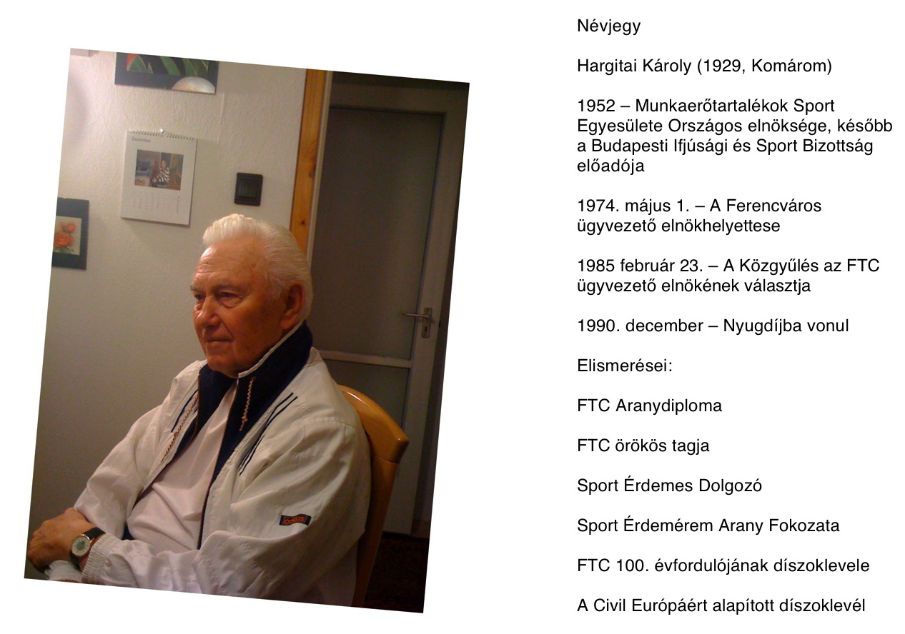 Ha megkérdeznénk egy fradistát arról, ki is volt a klub elnöke a rendszerváltás idején, ki vezette át a klubot a – mondjuk így – modern korba, alighanem sokan nem tudnák a választ. Pedig Hargitai Károly ma is olyan gondolatokat fogalmaz meg, amelyekből sokat meríthetne a klubvezetés. Nemcsak vérbeli fradista, aki mindig a Ferencváros érdekeit tartotta szem előtt. Igazi ember is, aki bölcsességével, humanizmusával, klubhűségével példakép lehet mindannyiunk számára. Érdemes lenne megfogadni tanácsait.