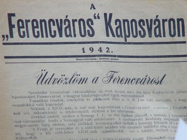 A Ferencváros Kaposvárott címmel alkalmi lapot adtak ki Kaposváron az 1942-es Magyar Kupamérkőzés előtt. A címoldalon Ostermann Lajos köszöntötte a zöld-fehéreket. A Fradi egyéb ként félgőzzel játszva is majd kétszámjegyű győzelmet aratott. Sárosiék 9:1-re győztek. Dr. Sárosi György már a 4. percben a kapuba talált.