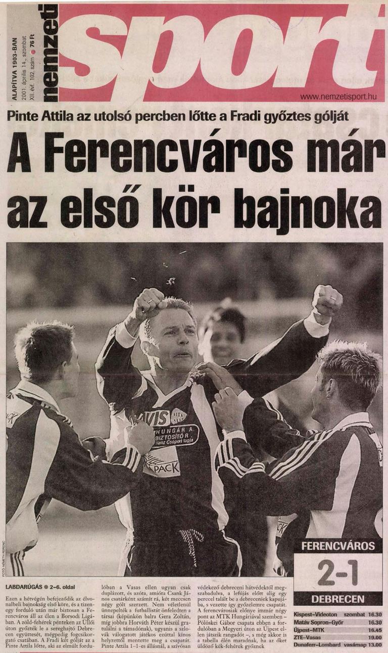 2001. Ferencváros – DVSC 2-1, NB1 rájátszás