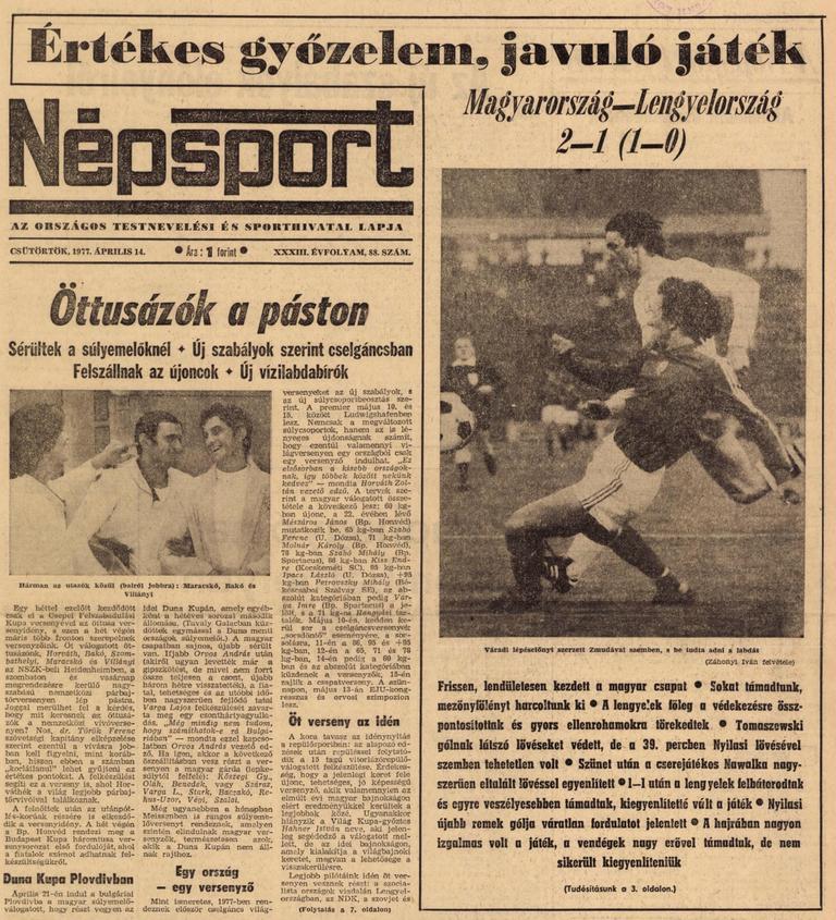„A Ferencváros pompás játékkal nyerte az antwerpeni tornát, 12 ezer néző előtt, Sárosi teljesen rendben van, két góllal járult hozzá a magabiztos győzelemhez. A harmadik gólunkat Toldi szerezte. Csapatunkból különösen a fedezetsor játszott nagyszerűen. Ezenkivül a balszárny, valamint Táncos volt jó. Sárosi nagy kedvvel játszott” – értékelte a mérkőzésről Blum Zoltán, a csapat trénere. (1936 – Wisla Kraków)