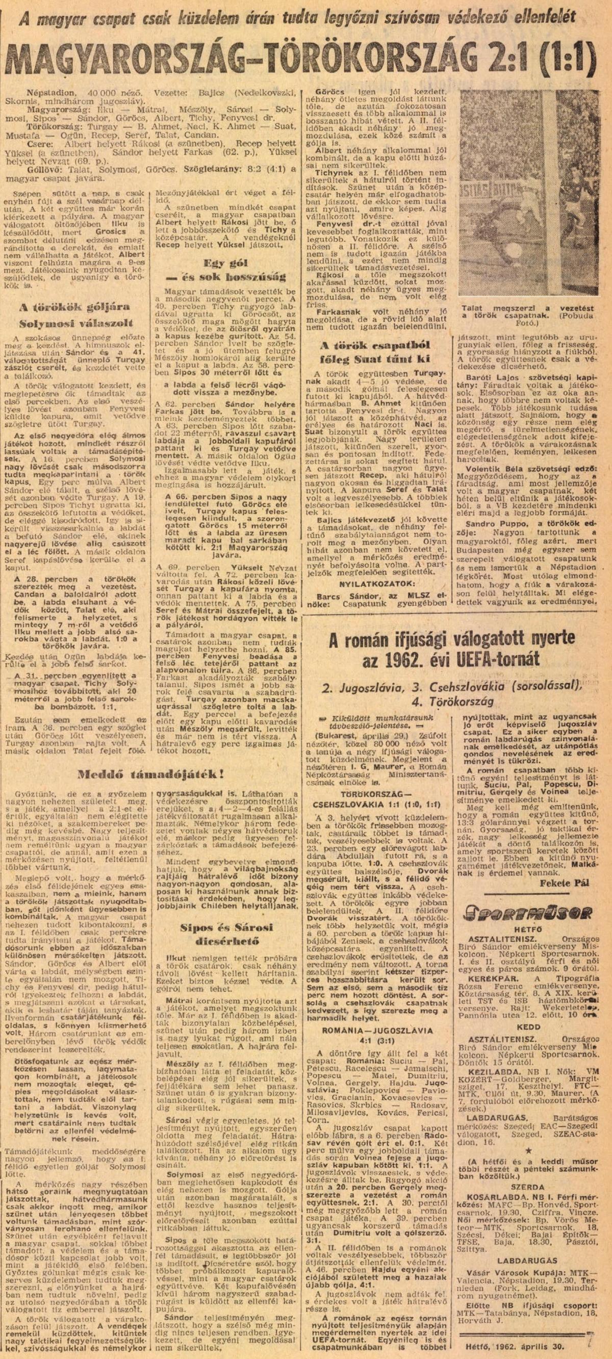 „Nem állította nagy feladat elé a Ferencvárost az Attila. Feltűnően sok ofszájd volt ezen a meccsen, tizenhármat fújt le a bíró…A csatársorban Takács II. nagyszerű játéka volt a szenzáció. Ennek a fiatal fiúnak kivételes tehetsége mind gazdagabb színekben pompázik. A zöld-fehérek öt góljából négyet vállalt magára. Tóth István, a Ferencváros trénere: – Nem volt érdekes a mérkőzés. Az Attila nem tett bennünket próbára. Nem volt szükség a tempó erősítésére. Ez meg is látszott a fiúk játékán.” (1928 – Attila)
